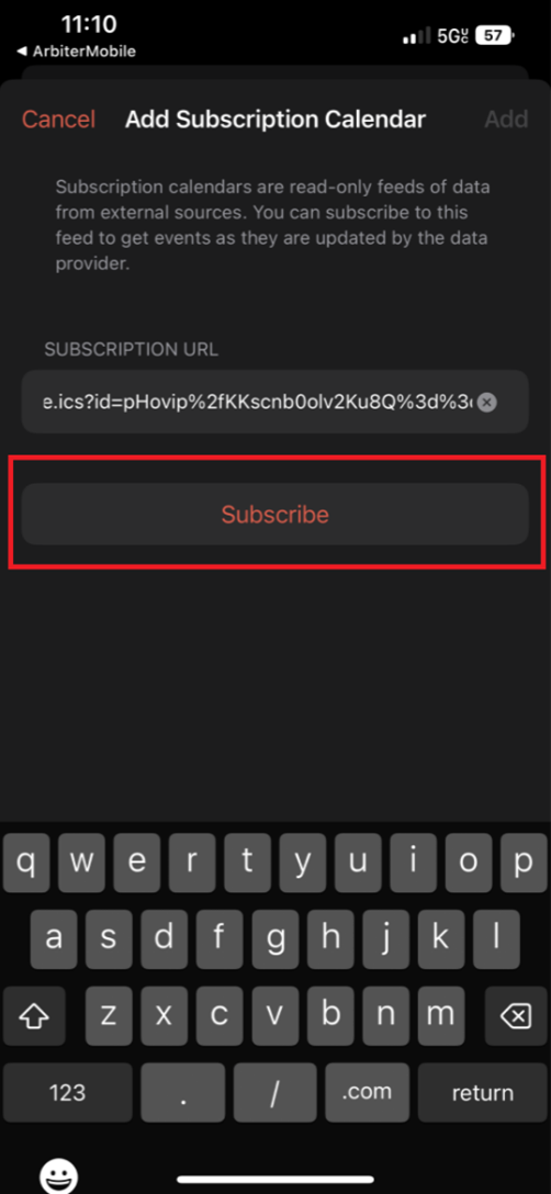- Click Subscribe and your calendar feed will be added to your phone's calendar.